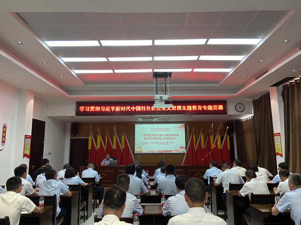 為深入開(kāi)展學(xué)習貫徹習近平新時(shí)代中國特色社會(huì )主義思想主題教育,7月6日下午,中閩水務(wù)集團黨委書(shū)記、董事長(cháng)劉文忠以“以高質(zhì)量黨建引領(lǐng)企業(yè)高質(zhì)量發(fā)展,在新時(shí)代新征程上彰顯新作為”為題,結合自身體會(huì )和工作實(shí)際,到福清水務(wù)公司講授主題教育專(zhuān)題黨課。