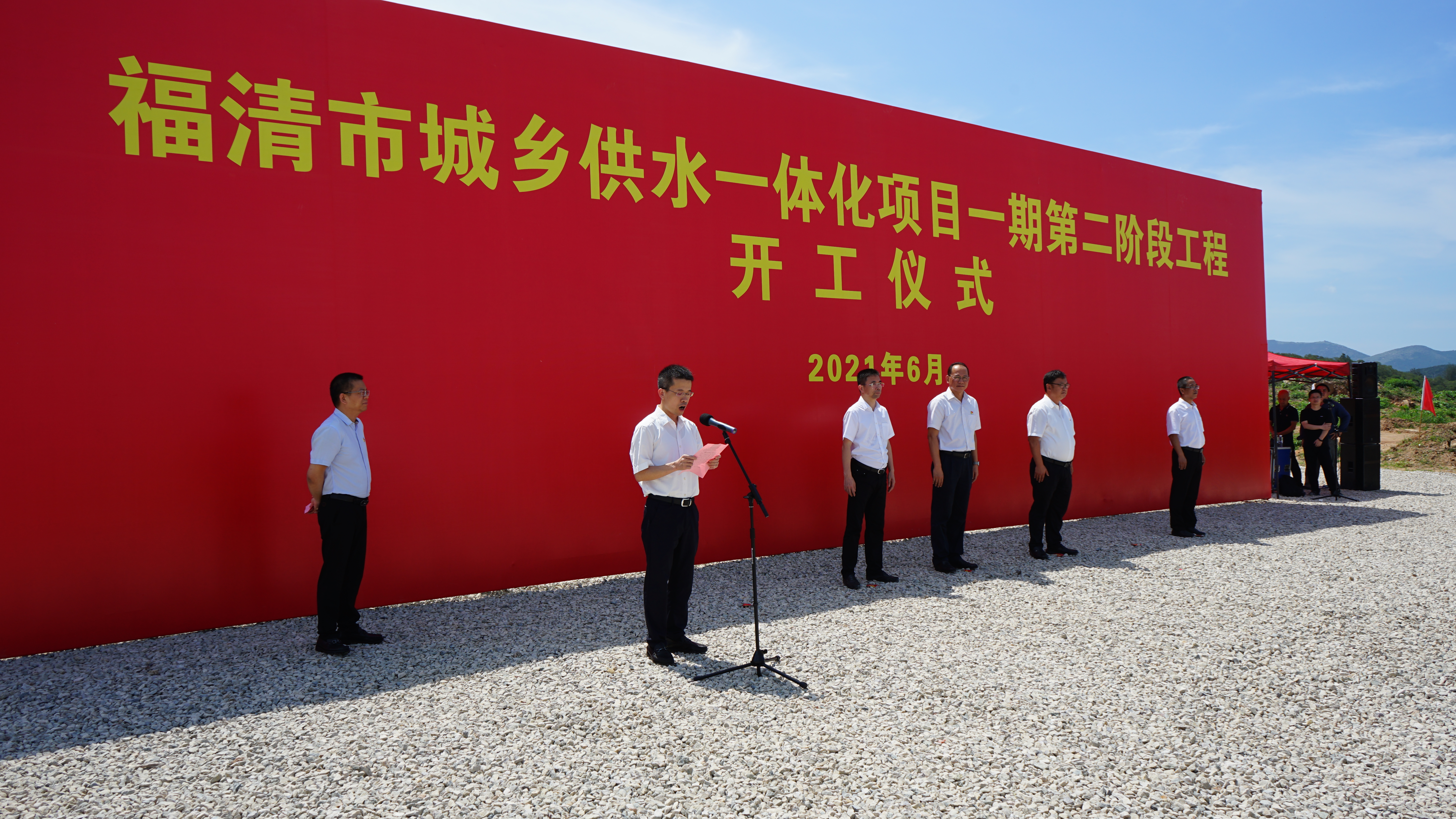 6月11日,福清市城鄉供水一體化項目一期第二階段工程在高山水廠(chǎng)舉辦開(kāi)工儀式,福清市委副書(shū)記、市長(cháng)張新懌,中閩水務(wù)集團黨委書(shū)記、董事長(cháng)葉輝等有關(guān)單位領(lǐng)導、福清水務(wù)公司員工代表、東瀚鎮村干部群眾代表和施工單位代表等100多人參加活動(dòng)。此次新開(kāi)工的城鄉供水一體化項目一期第二階段工程包括新建日供水8萬(wàn)噸的高山水廠(chǎng)、鋪設5條從高山水廠(chǎng)直通東瀚鎮的50公里供水主干管等,將惠及東瀚鎮17個(gè)行政村近2.5萬(wàn)農村百姓。